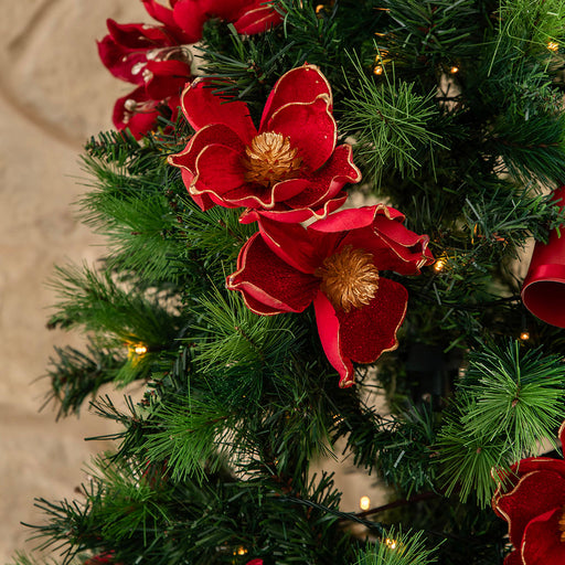 Durable and long-lasting charm Add a touch of Christmas charm with our Red Magnolia Flower Stem. The velvet-like petals and twine trim details crea...
