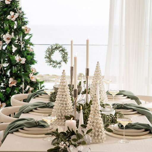 Enhance your Christmas decor with the elegant Nickel Taper Candle Holder. Its shiny silver finish adds a sophisticated glow to any display, creatin...