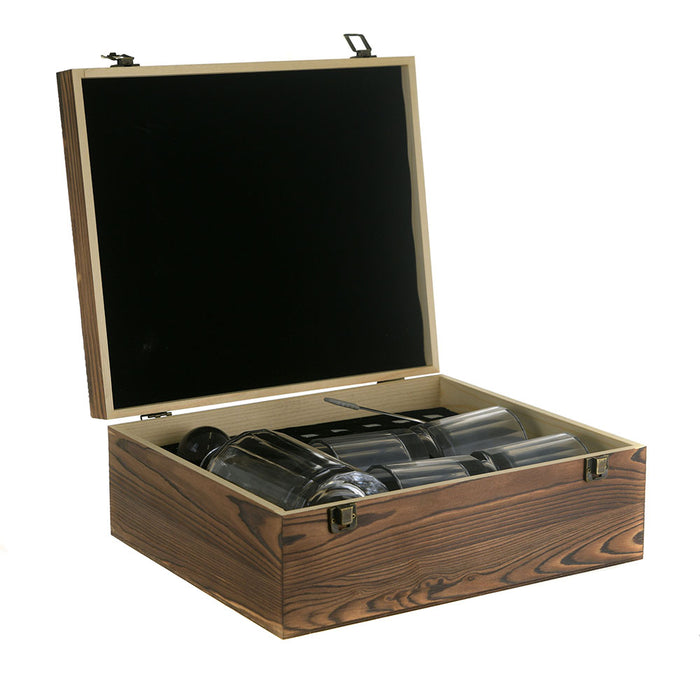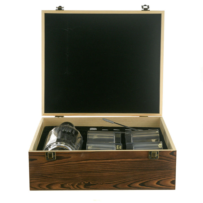 The Decanter with Glasses Whiskey Set features an elegant design ideal for decanting Scotch, Irish whiskey, or fine American bourbon. Its refined shape enhances the presentation, making each serving—whether neat or on the rocks—a visual and sensory pleasure. This set combines style and function, elevating the whiskey experience for connoisseurs and enthusiasts alike.