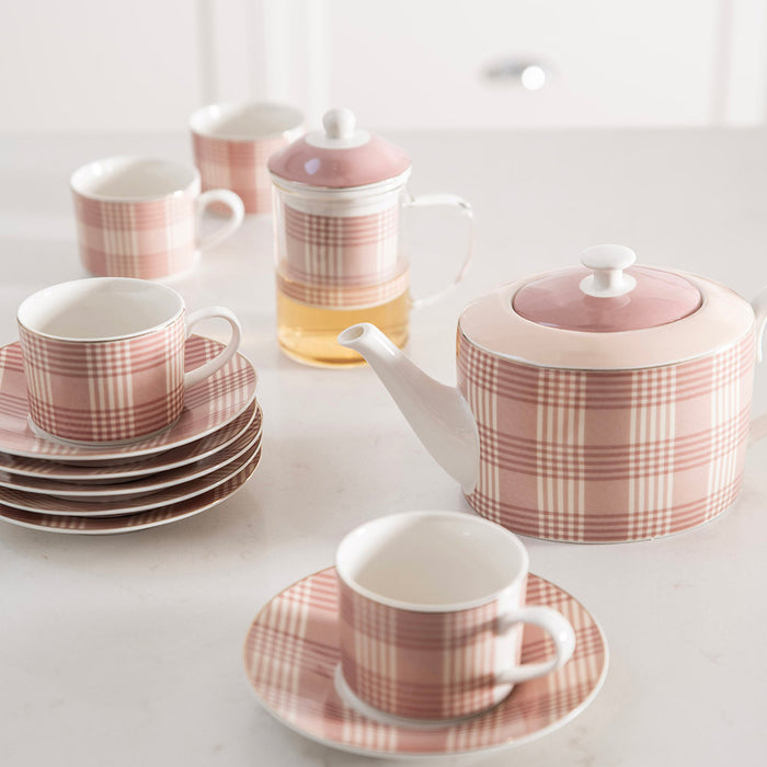 TEAPOT New Bone Beige Plaid with Gold Rim 1.2L